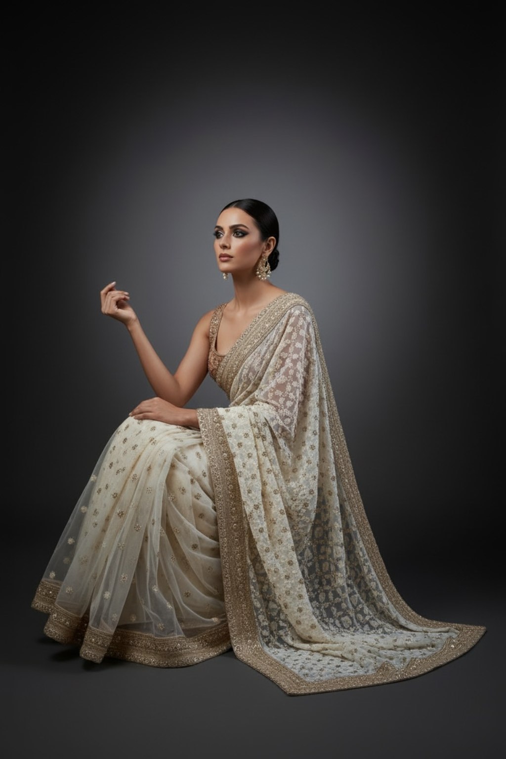 Ivory Chilankari Hand Embroidered Saree