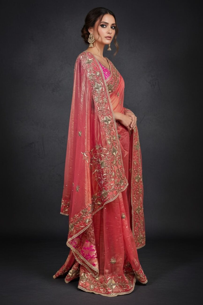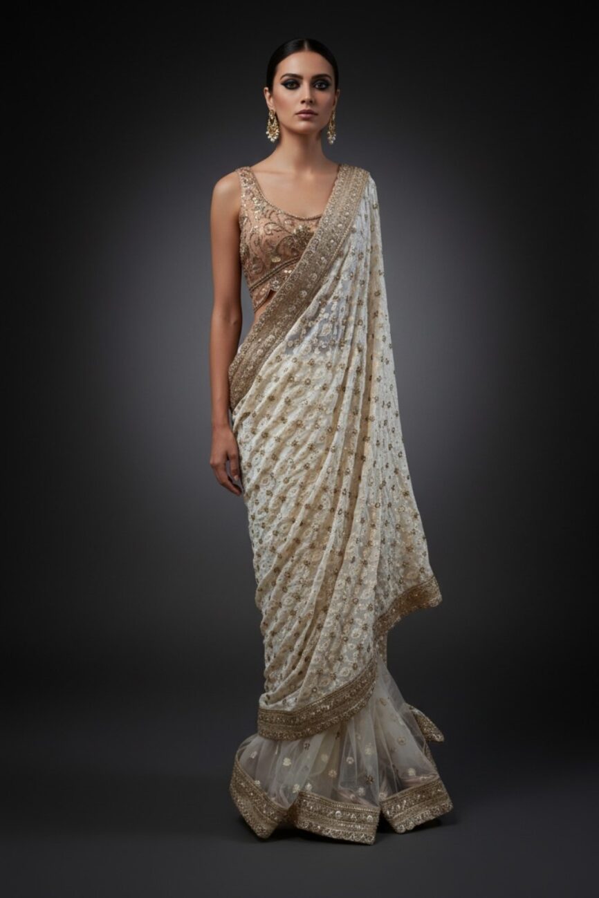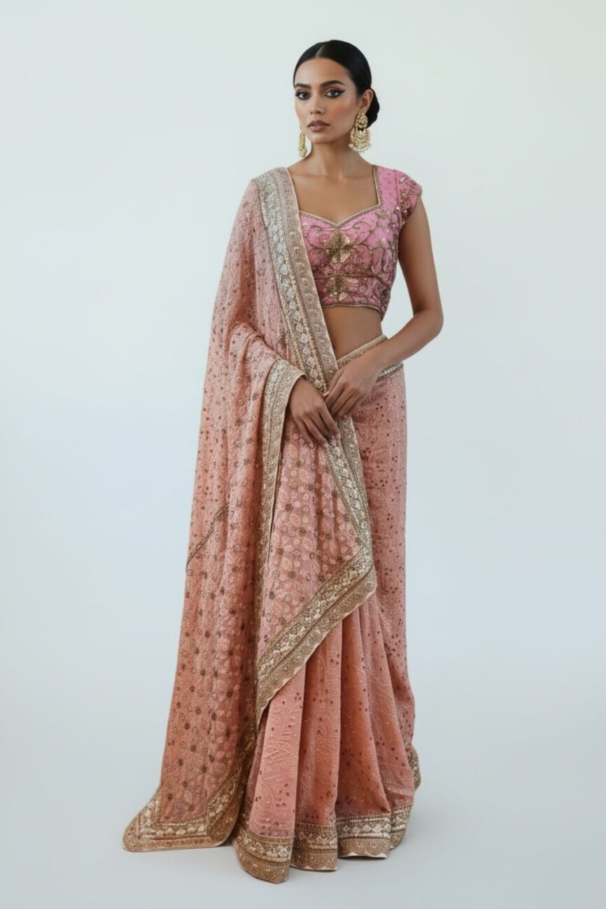 Find a wide range of designer sarees for ladies, from exquisite georgettes to hand-embroidered sarees that are suitable for weddings, receptions, or family get-togethers.